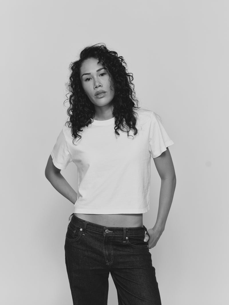 The ultimate girl’s girl. Designed for high-waist and low-rise lovers alike, this slightly cropped cut has a soft swing that hits clean at the hip. Slim through the shoulders for a slightly off-shoulder look. Excellent for gossip.